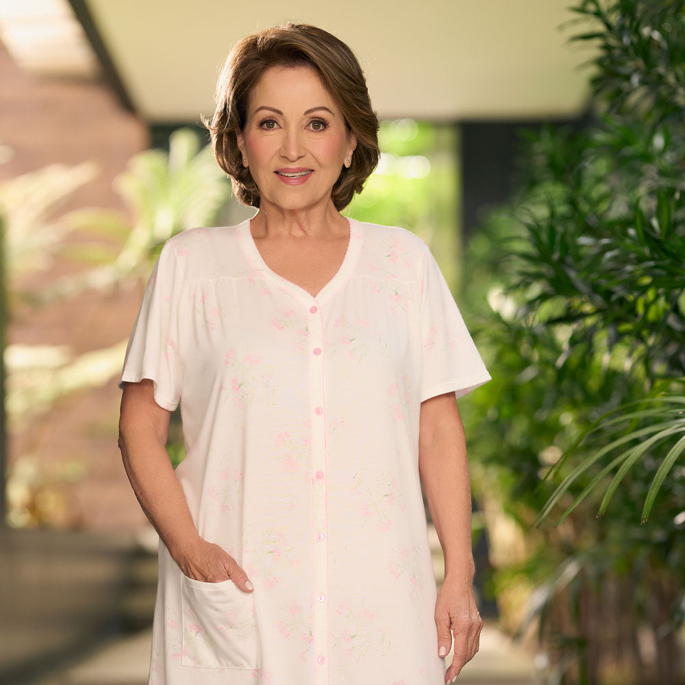Batola levantadora manga corta estampada de silueta amplia con bolsillo lateral y abierta completa con botones para mayor comodidad. Tela suave y fresca. Tejido de punto. POLIESTER ALGODÓN 65 35