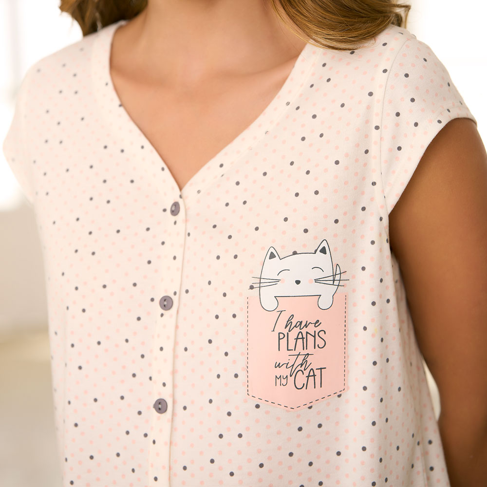 Batola manga pequeña estampada, abierta con botones para mayor comodidad, estampado localizado en el frente. Tela suave y fresca. Tejido de punto. POLIESTER ALGODÓN 65 35