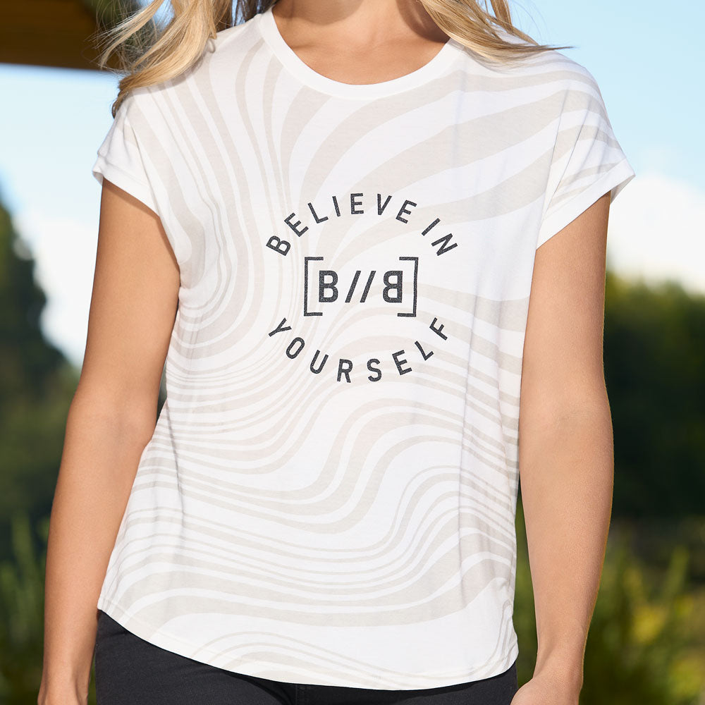 Camiseta manga rodada estampada en el frente. Tela suave y fresca. Tejido de punto. VISCOSA ELASTANO 93 7